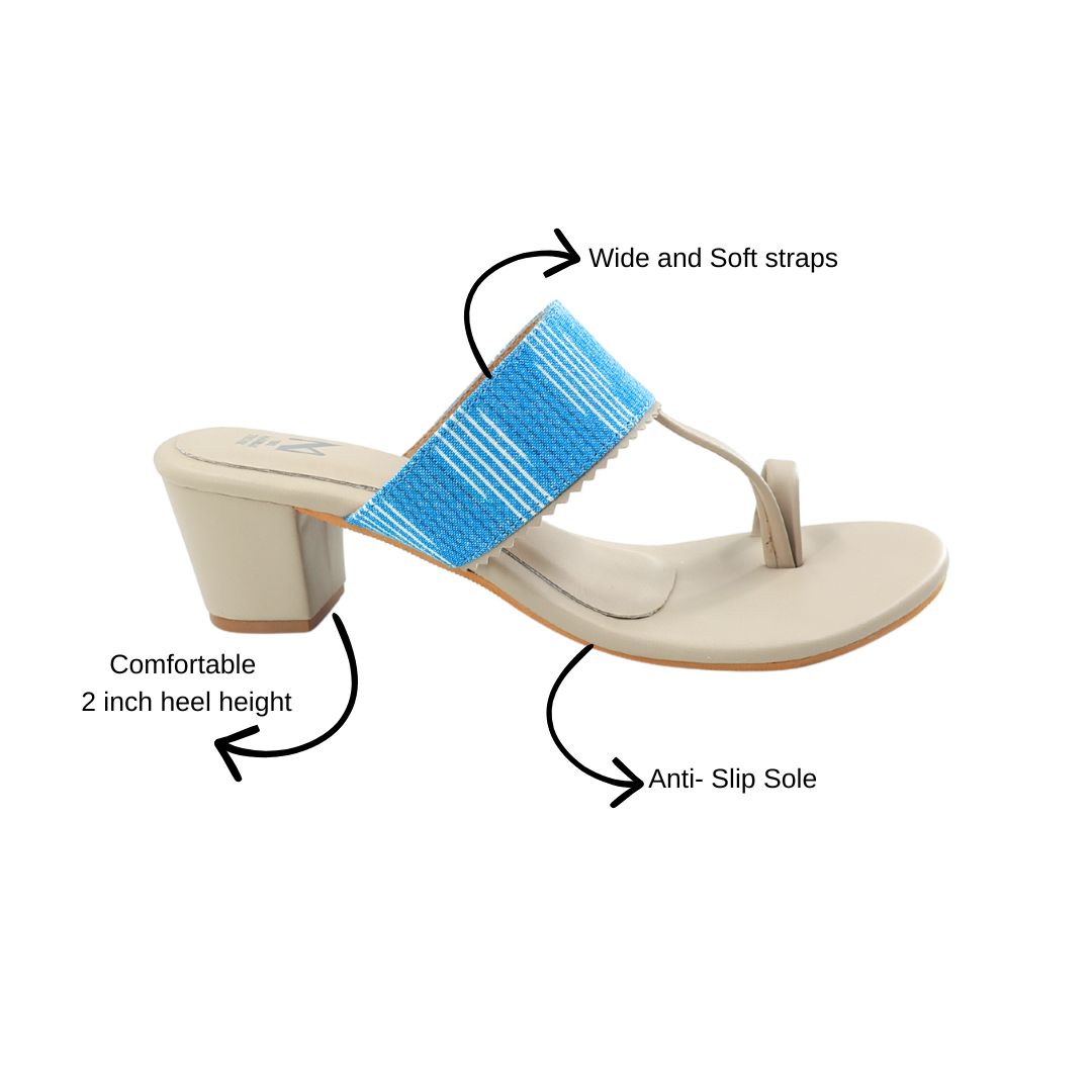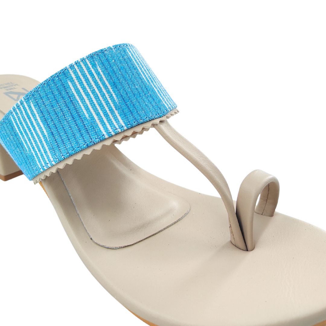 Our Ikat Kaya block Heel Series has a unique design like bold ikat strap and it brings together earthy tones and artisanal charm. The comfortable block heel adds just the right lift, while the classic toe-ring silhouette keeps it timeless.
