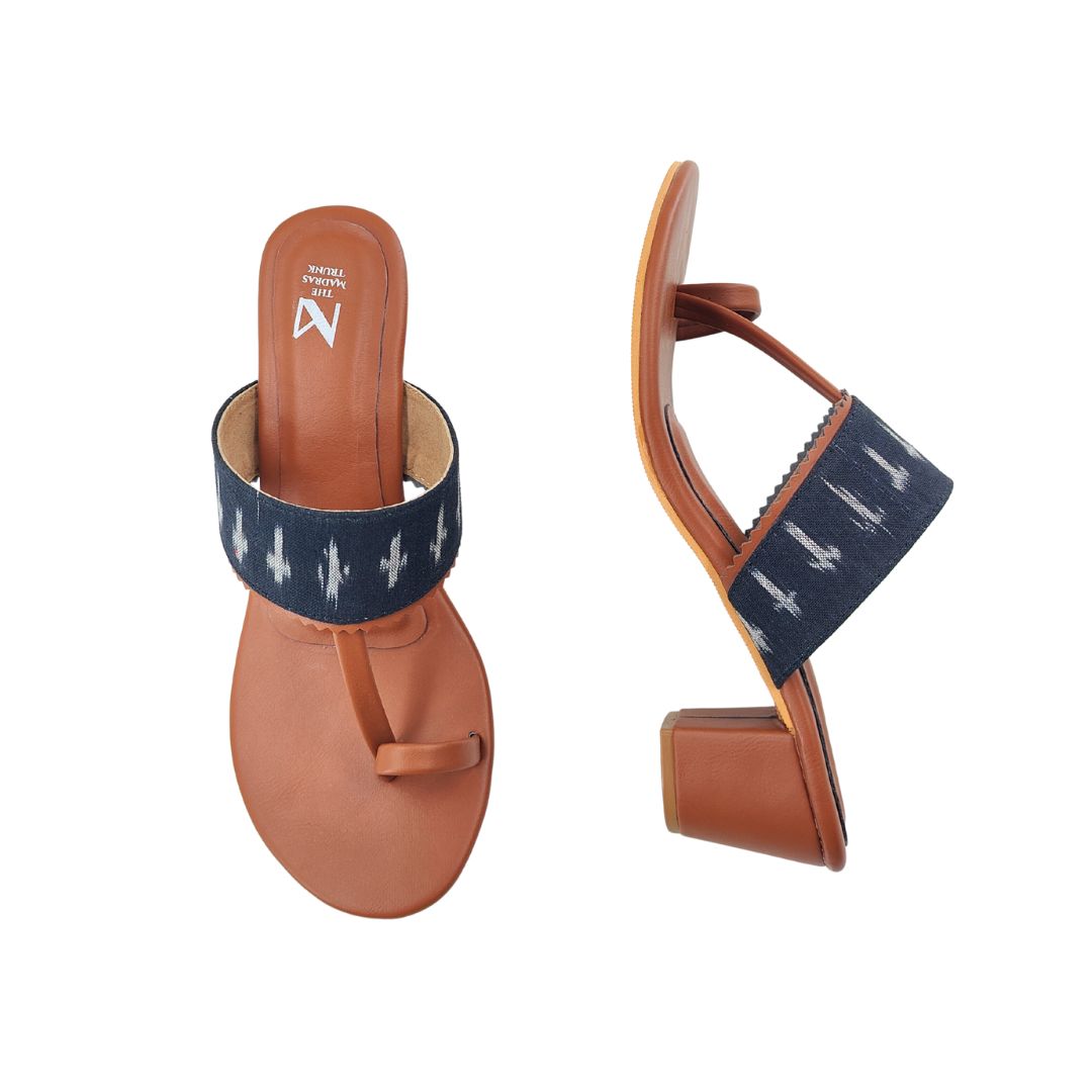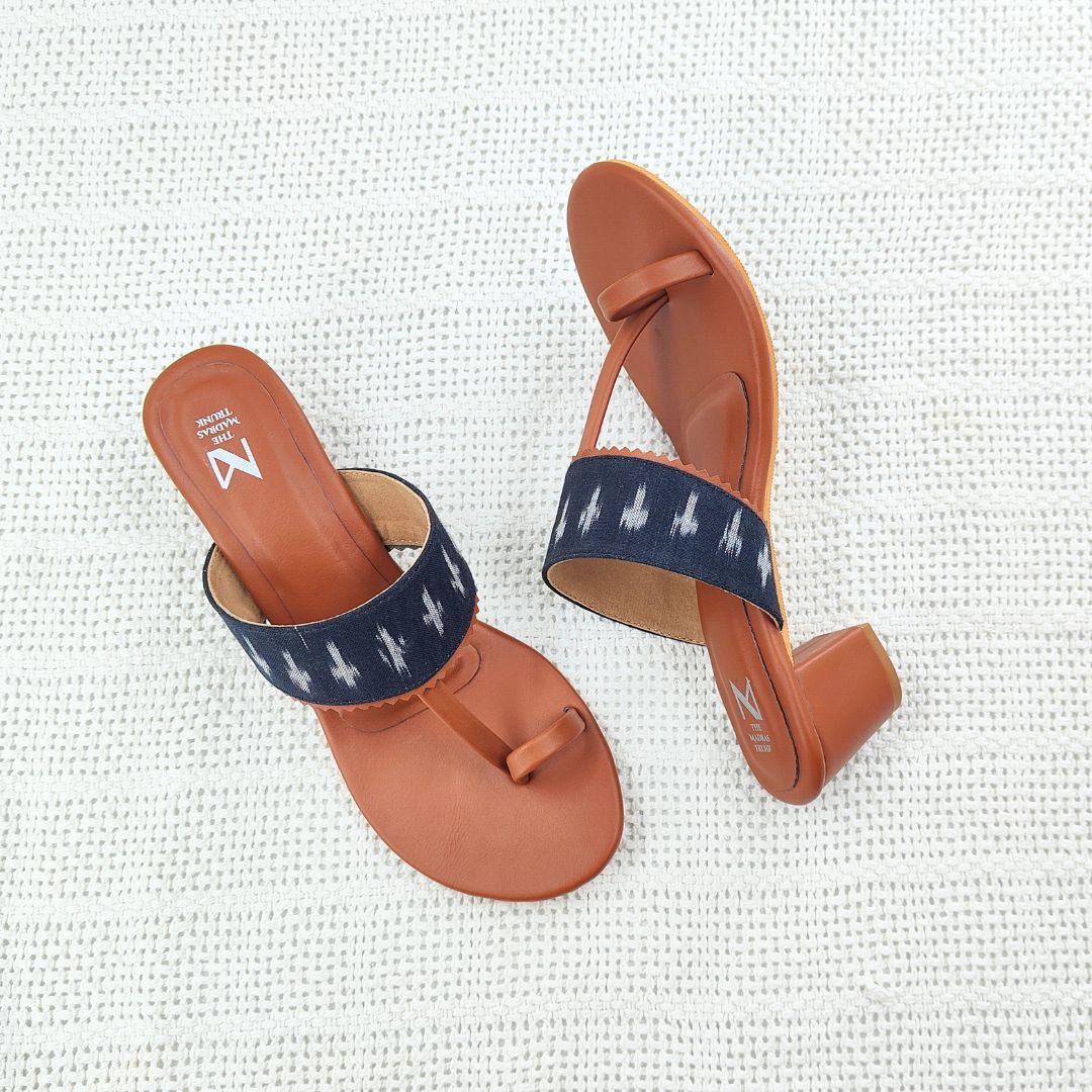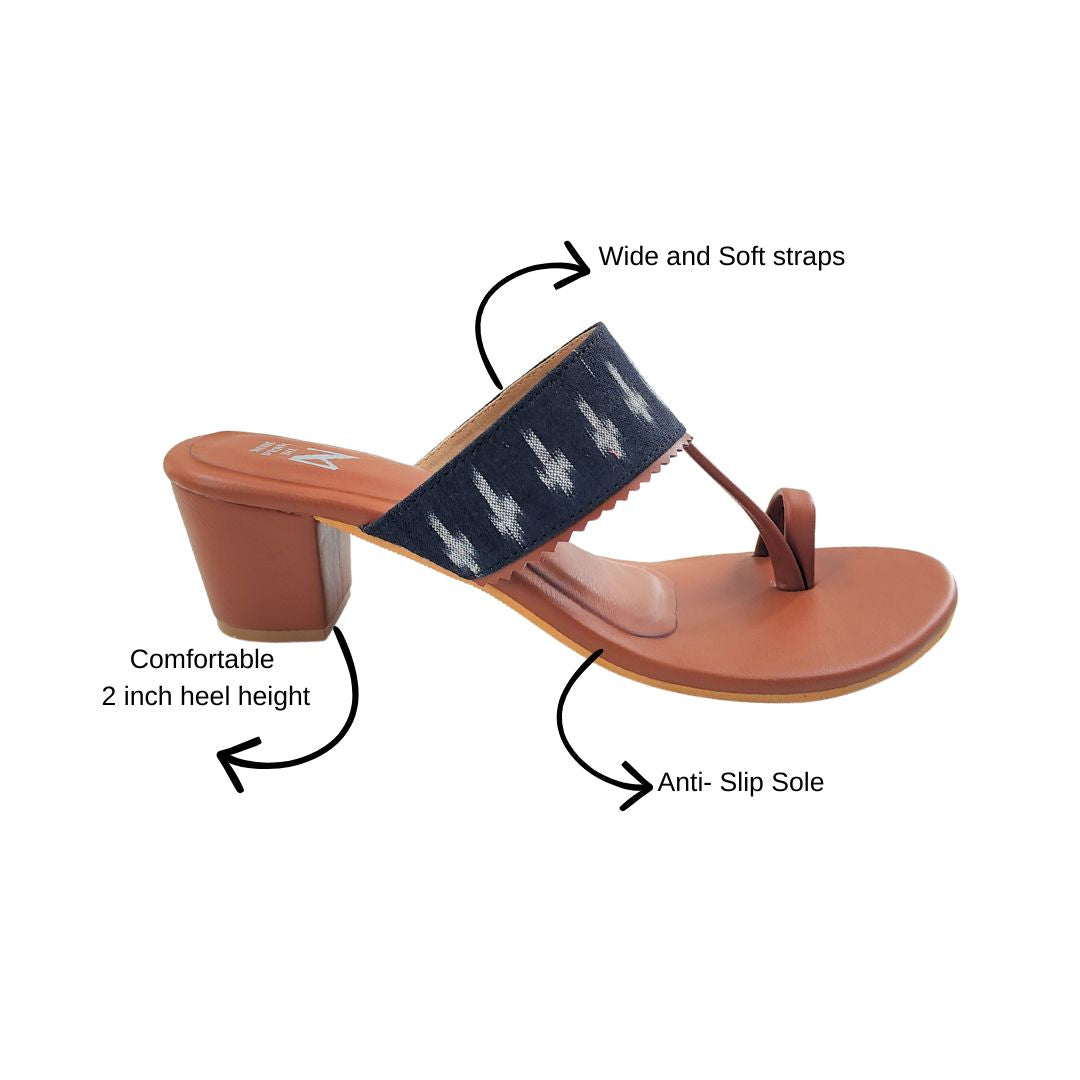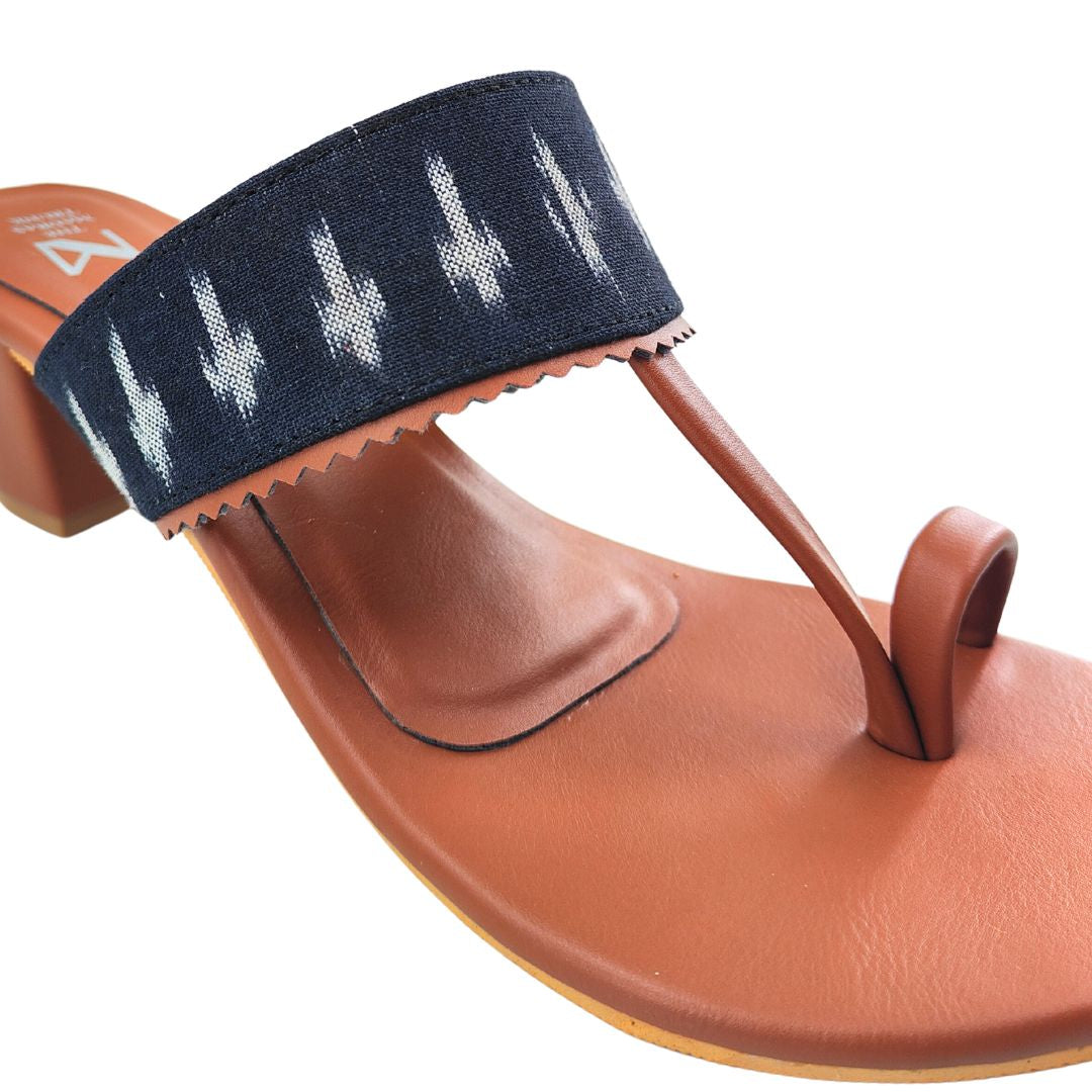 Our Ikat Kaya block Heel Series has a unique design like bold ikat strap and it brings together earthy tones and artisanal charm. The comfortable block heel adds just the right lift, while the classic toe-ring silhouette keeps it timeless.